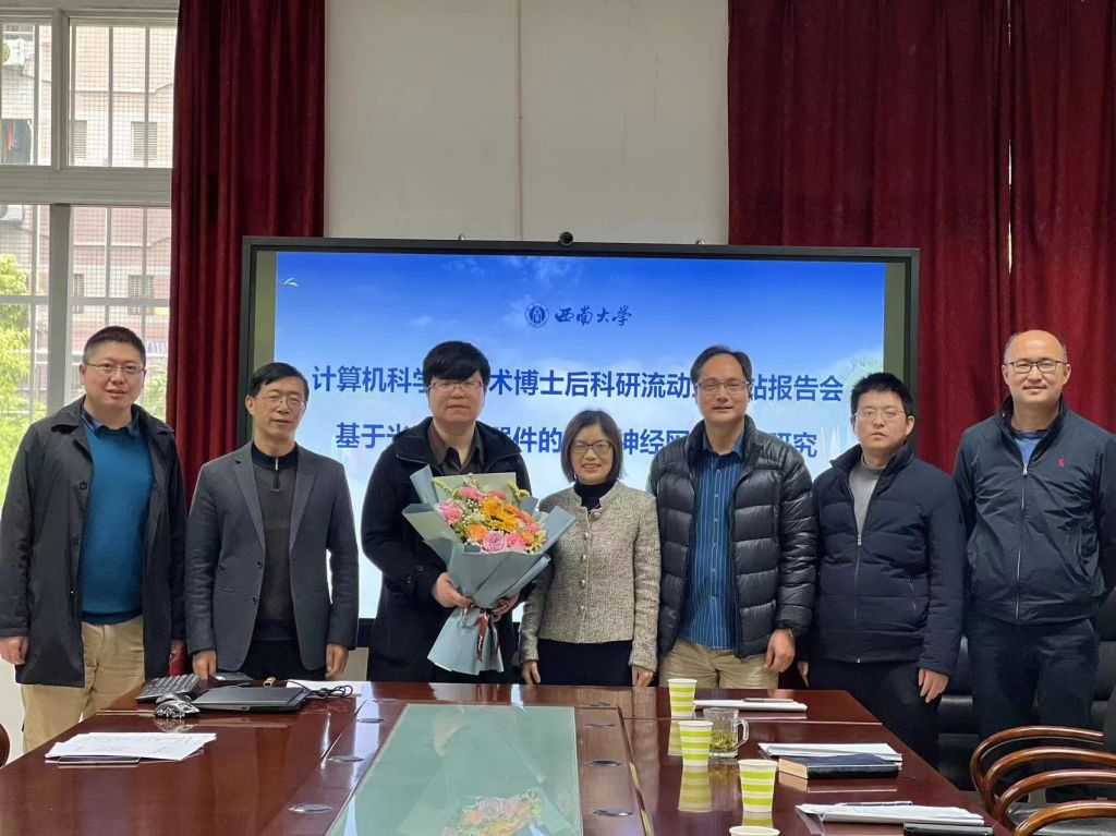 3月28日上午,计算机科学与技术博士后科研流动站举行出站报告会。专家组由谭玉娟、肖国强、李传东、解宜原、何兴、张继亮组成,会议由专家组组长重庆大学谭玉娟教授主持。