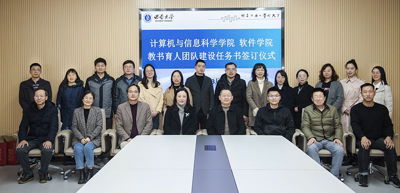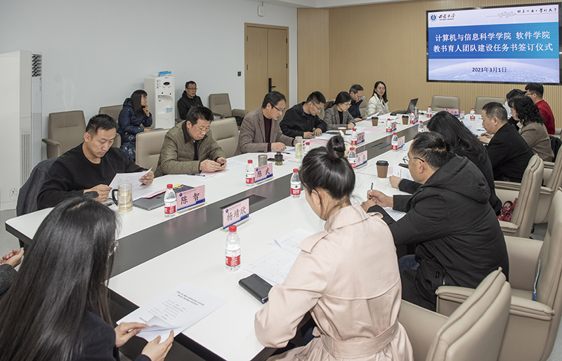 2023年3月1日,我院在25教1314会议室举行教书育人团队建设任务书签订仪式。教务处处长吴能表,党委教师工作部部长李燕,学院领导班子成员,15个教书育人团队负责人及成员代表参加了签订仪式。会议由学院党委书记孙楚航主持。