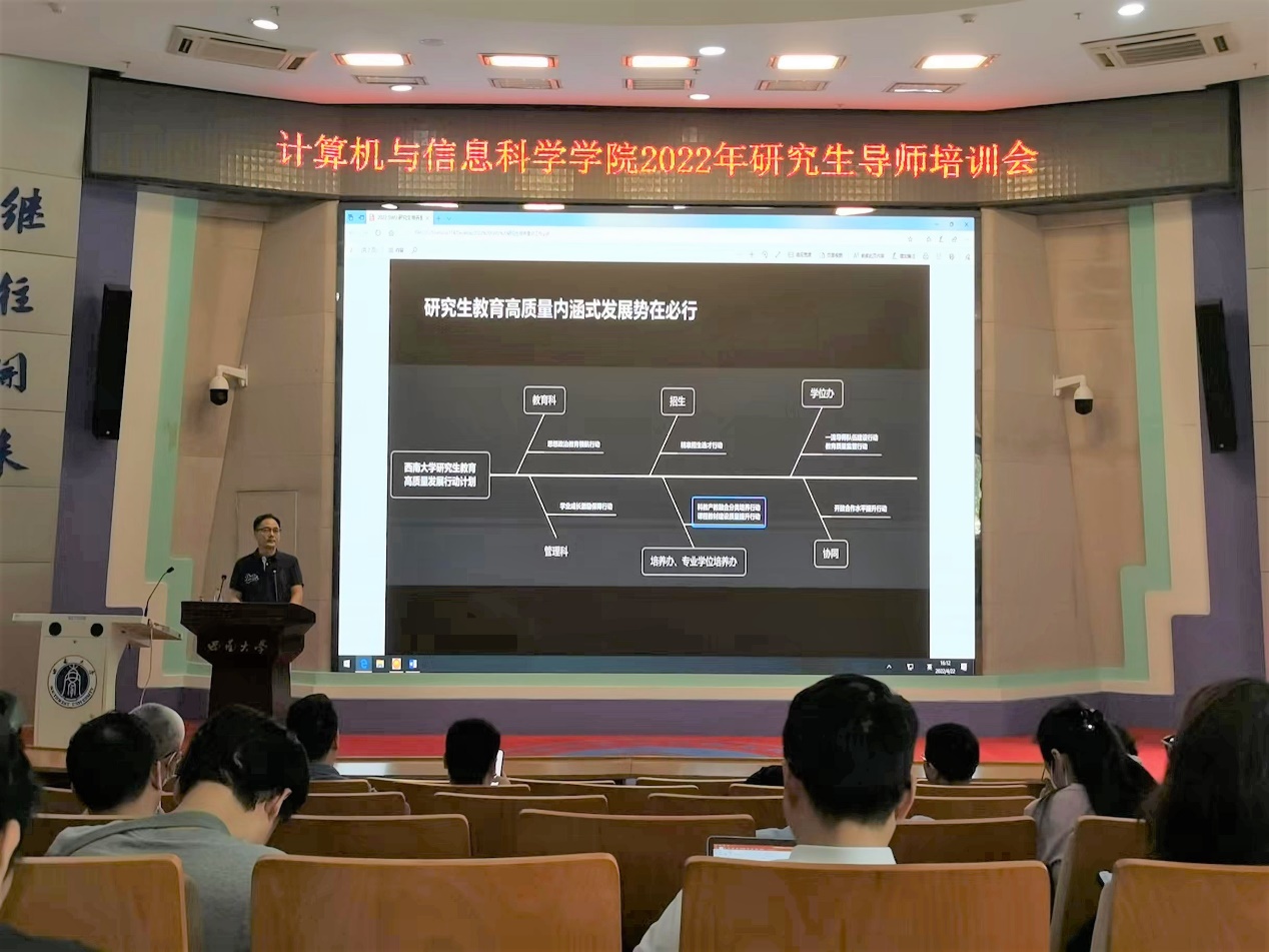 根据研究生院《关于各培养单位开展2022年研究生指导教师培训工作的通知》,学院制定了《计算机与信息科学学院 软件学院导师培训方案》,分别举行题为《研究生学位论文质量提升举措,良好导学关系构建》、《师德师风教育》专题讲座;《常态化疫情防控形势下,如何保障非全日制研究生学位论文质量》专题研讨,组织导师自学研究生管理相关文件和规章制度。