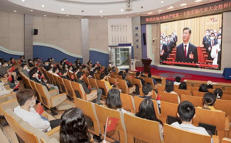 学院师生纷纷表示要更加紧密地团结在以习近平同志为核心的党中央周围,高举中国特色社会主义伟大旗帜,深刻领悟“两个确立”的决定性意义,增强“四个意识”、坚定“四个自信”、做到“两个维护”,弘扬伟大建党精神,认真学习、深刻领会报告精神,用党的最新理论成果武装头脑、指导实践、推动工作。