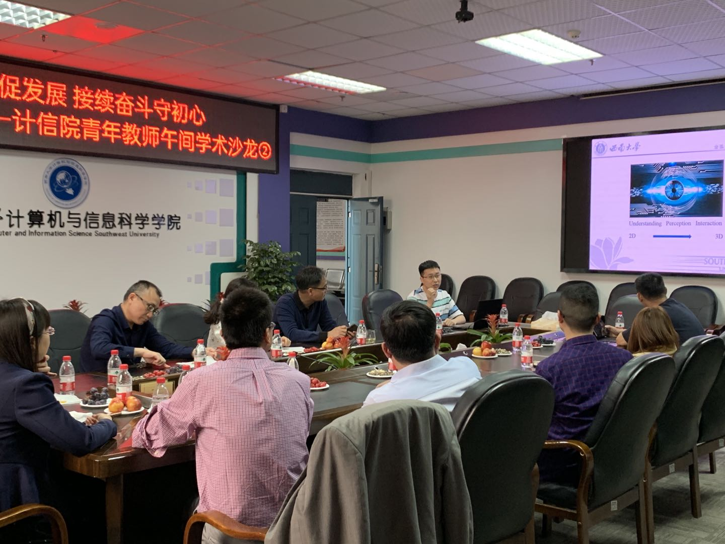 初夏时节,阳光和煦。5月7日,计算机与信息科学学院 软件学院青年教师午间学术沙龙第二期开讲,学校信息化建设办公室主任贾韬、学院院长肖国强、党委副书记陈智、副院长韩毅、陶丽,工会主席王英以及学院青年教师参加活动。