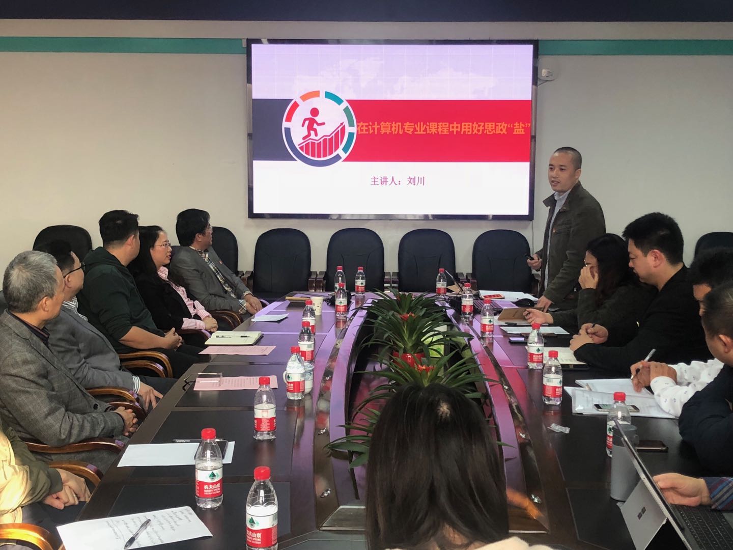 在随后进行的支部党员讲党课环节,吴松同志以《我与脱贫攻坚》为主题,汇报了学院主动发挥学科优势与专业特长助力脱贫攻坚的工作成果,讲述了自己跟随学院团队共赴三建乡开展信息扶贫的见闻与体会。刘川同志以《在计算机专业课程中用好思政“盐”》为主题,讲述了专业课教师用好思政“盐”的重要性,并分享了自己在操作系统专业课教学中实践课程思政的三点做法。