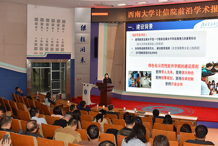 为深入贯彻落实习近平总书记在全国网络安全和信息化工作会议上的重要讲话精神,开展特色化示范性软件学院建设工作,强化专任教师立德树人、教书育人的初心使命,10月9日下午,计算机与信息科学学院 软件学院举办专任教师教学培训会。北京交通大学的卢苇教授和邢薇薇教授受邀担任报告嘉宾,全院一百余名专任教师参加本次培训会。