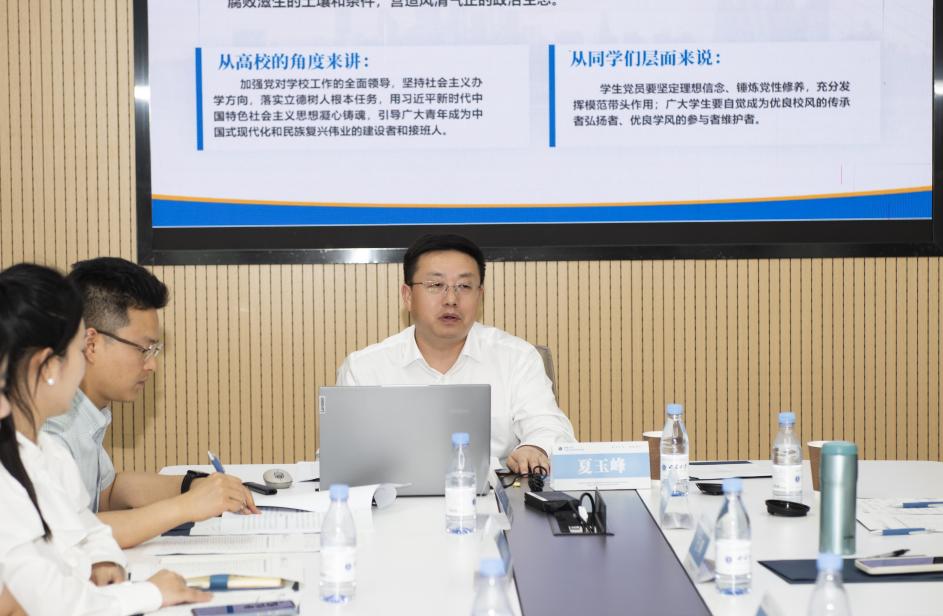 课前,夏玉峰书记和同学们亲切交流。学院2020级软件工程中外合作办学专业方承煜同学结合大学期间在GKD机器人创新团队的科研经历,分享了工科学生的科技报国志。2022级网络工程专业王佳祺同学介绍了在重庆各街道、乡镇参与基层数智社会治理的探索。韩舒波、杨子江、张珈琪等也结合自己的科研探索、志愿服务、学习实践分享了学习习近平总书记视察重庆重要讲话重要指示精神的心得体会。