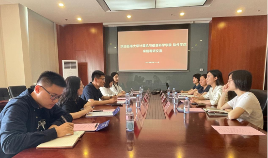 在西南交通大学,学院一行与西南交通大学计算机与人工智能学院党委书记李天瑞、党委副书记肖静、办公室主任陈延云、学工组副组长李裕等座谈交流。李天瑞书记介绍了西南交通大学计算机与人工智能学院的发展历程、学科设置、师资队伍、科学研究、人才培养、国际合作等方面的情况,重点介绍了学院在人工智能、工业软件与工业互联网、网络空间安全、智能+交叉融合等方面的成果和探索。肖静副书记介绍了学院BP型辅导员工作室的实践探索和网络育人、科研育人、组织育人等方面的情况。双方就人才培养、有组织科研、人才引育等方面的议题进行了深入交流。