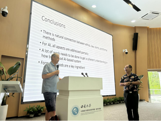 报告会上,Martin Leucker教授细致讲解了在潜在安全关键领域(欧洲管辖范围内)开发基于人工智能的软件系统时面临的几个挑战,包括风险管理系统的设计、数据质量和安全性的验证等方面,还阐述了基于风险的研究思路及其对软件工程开发过程的影响。他分析了使用形式化方法来支持相应开发过程中的设计和分析步骤的优势,表示这是旨在构建基于人工智能的软件系统时的可靠技术解决方案。他最后强调,AI软件系统的安全性和可靠性不仅依赖于技术创新,更需要多学科的协同合作和政策法规的支持。