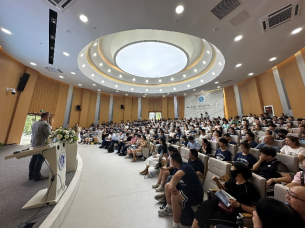 首先,副院长廖剑伟介绍学院办学情况。他表示,学院办学底蕴深厚、师生体量大、办学类型多,具有学校发展支持、学科交叉融合、人文涵育等多方面优势,学院基于一特、三力、六维的新工科融通式人才培养范式将为新同学们提供优质的成长发展和条件保障。随后奥克兰大学理学部(国际)副部长Sebastian Link 向同学们作学校及专业介绍,他细致分享了奥克兰大学的办学情况、课程安排、特色专业及优势、奖学金政策,还分享了杰出校友、学习生活与职业发展等情况。接着奥克兰大学博士生张卓兴、唐燕妮分享就读经验,介绍在奥克兰大学的学习和生活。