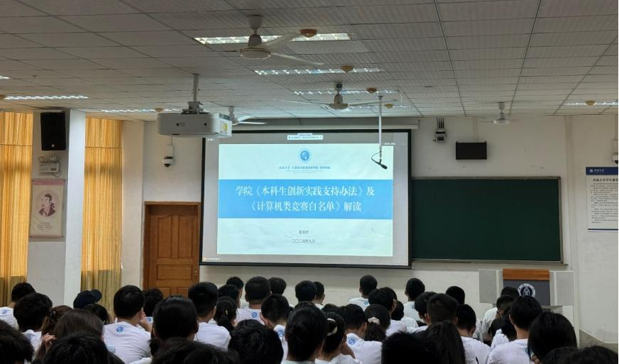 9月11日下午,学院在第28教学楼开展创新实践与学科竞赛专题讲座,夏浩然老师和高年级学生代表深度讲解了创新实践以及学科竞赛的相关政策和自身经验。夏老师首先解读了学院《本科生创新实践支持方法》与《计算机类竞赛白名单》等相关内容、需要重点关注的竞赛项目以及参赛注意事项。傅祥斌、刘力源、张哲萌三位同学分别介绍了数学建模竞赛、机器人创新实验竞赛以及程序设计类竞赛的参赛经验和相关内容,基本上涵盖了大学期间学院同学可以参与的所有竞赛类型,让新同学们对竞赛有了更深刻、更全面的了解。