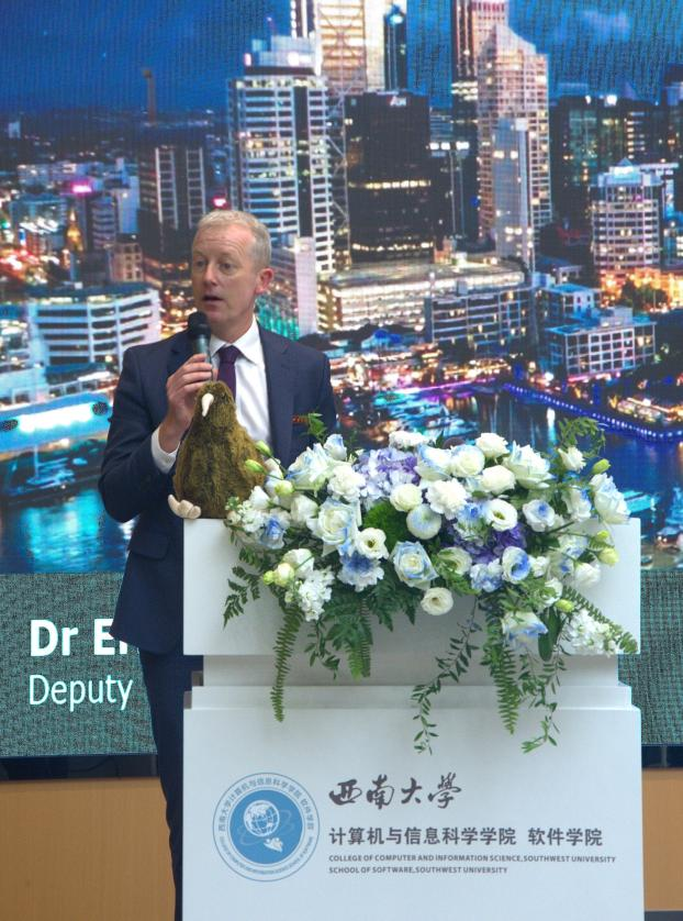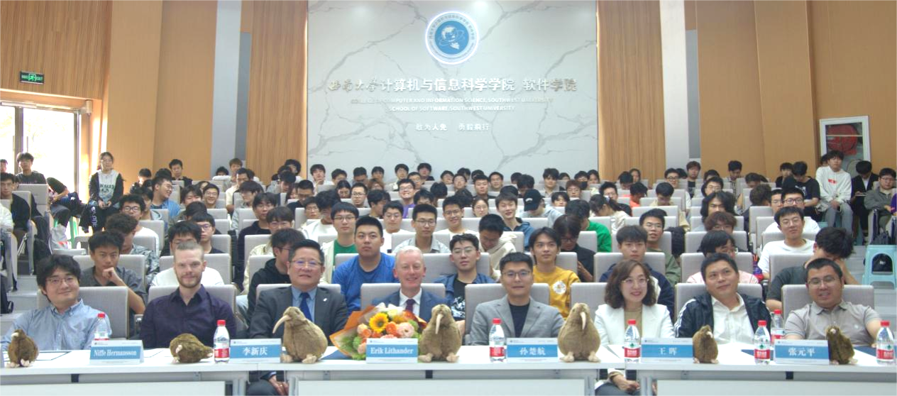 10月28日下午,奥克兰大学副校长Erik Lithander教授来院与计算机科学与技术专业(中外合作办学项目)学生见面交流。见面会在25教1楼学术报告厅举行,学院党委书记孙楚航,党委副书记王晖,计算机科学与技术系副系主任张元平,副系主任瞿经纬,辅导员杨靖欣、李飞阳、唐瑞萱,奥克兰大学刘佳谋博士、Niffe Hermansson博士、刘晶博士,AEMG教育集团董事长李新庆及集团西南分部陈思讯、赵璐老师共同参会。