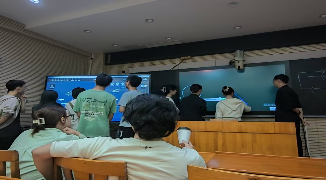 启动仪式前,学院计科师范专业的同学们在朝阳中学教师的指导下,参与了学校信息化教学环境的考察与操作实战。他们通过实际操作电子白板等教学设备和系统,深刻感受了信息技术在课堂教学中的应用。通过与教师交流,师范生们进一步理解了如何借助现代信息技术优化教学设计,激发学生学习兴趣,并提升课堂教学的效率与效果。