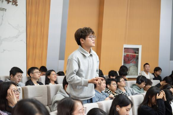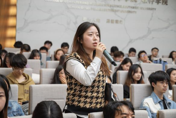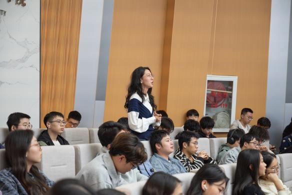 在互动环节中,同学们纷纷积极提问,从面试中的注意事项与技巧,当前就业前景、薪资待遇等方面与于美洁女士进行了深入交流。