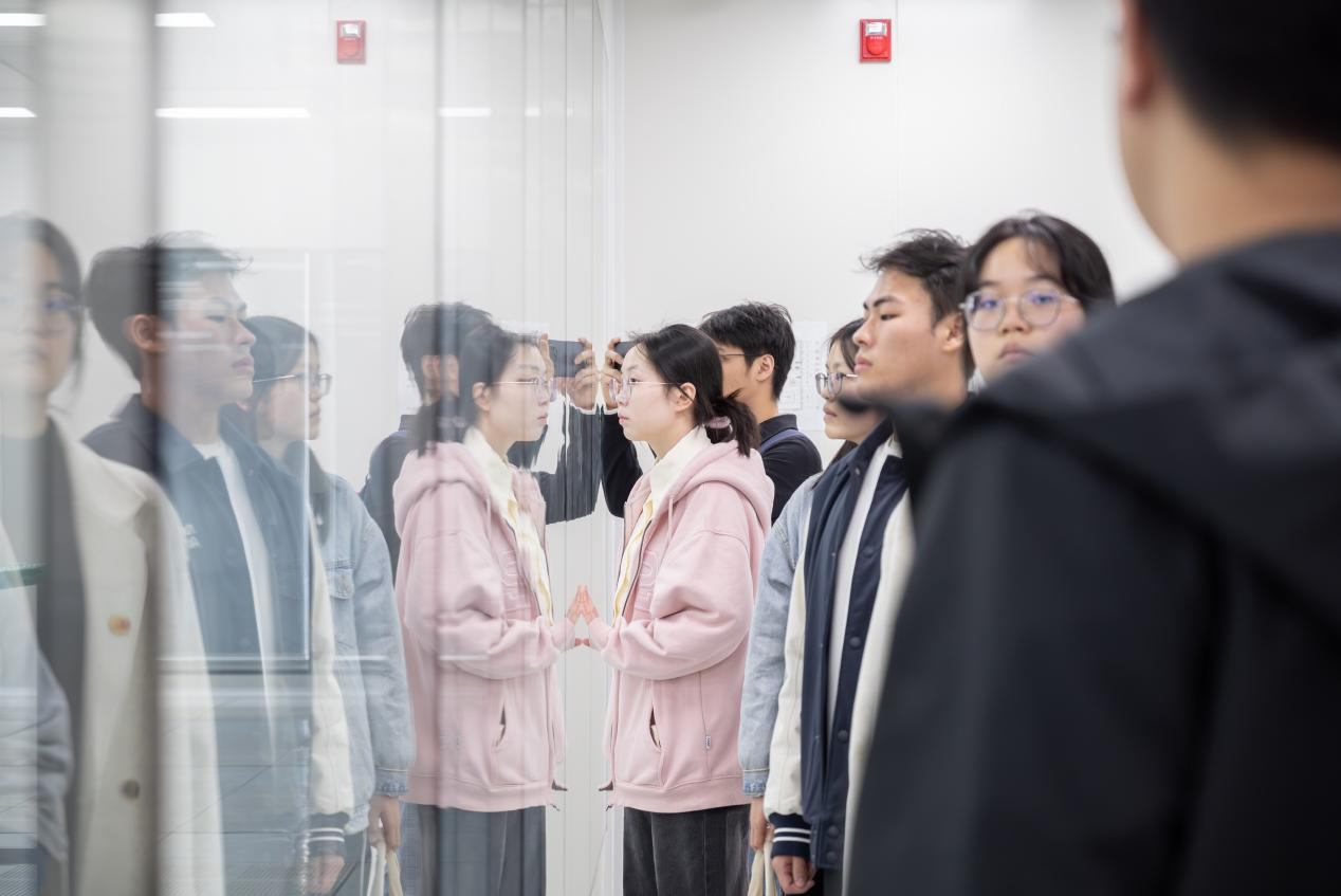 随后,学员们来到仙桃国际大数据谷展示体验中心,讲解员首先介绍了仙桃国际大数据谷的整体概况。接着,讲解员带领学员们深入了解了大数据的核心技术。从数据采集、存储、处理到分析应用,每一个环节都进行了详尽的阐述。特别是在数据可视化方面,通过直观的图表和动态演示,让学员们能够清晰地看到数据如何被转化为有价值的洞察,进而支持决策和优化业务流程。最后,同学们亲身体验了展馆中可穿戴智能设备、红外传感器、智能语音机器人等多种智能设施,全方位感受科技的魅力。