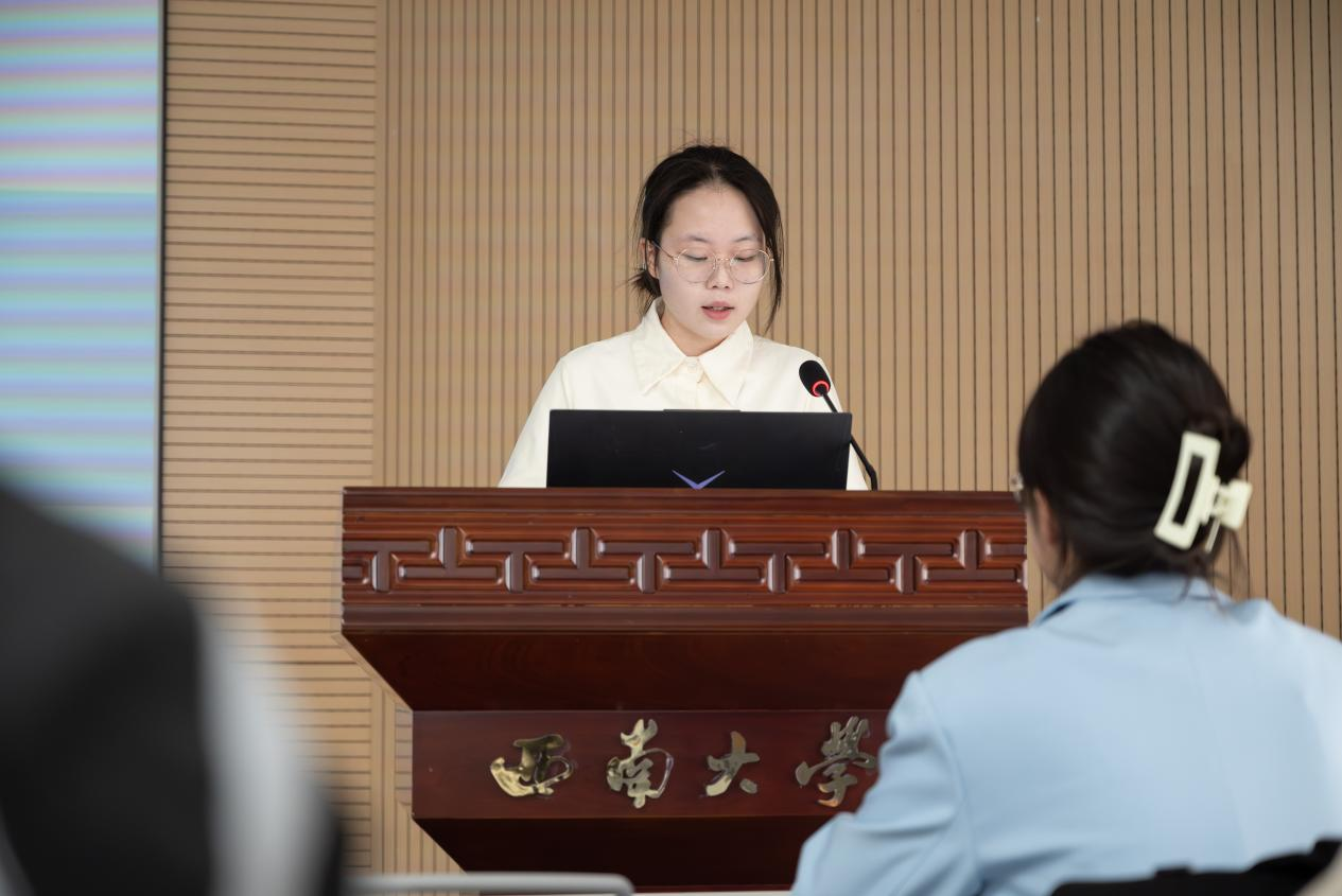 图1:“青马工程”院级培训班第一期学员李婷婷作经验分享
