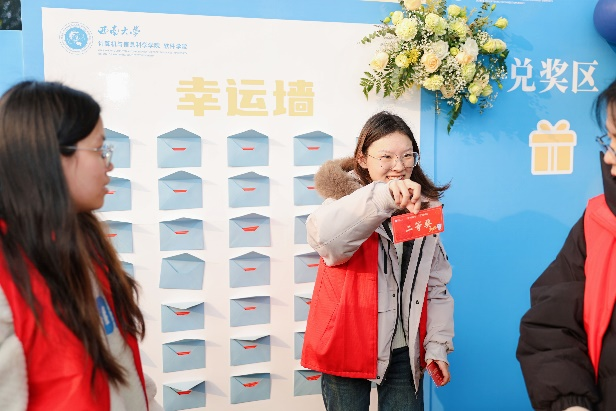 游园活动由“你演我猜”“笔墨蛇影”“疯狂摇摆”“蛇音妙猜”“蛇盘飞镖”“蛇行投壶”“巧抓娃娃”“蛇语解谜”等内容组成。拍照打卡、收集印章、换取礼品,创意十足的活动安排吸引了全院师生的热情参与,整个活动现场洋溢着一片欢声笑语、温馨和谐的景象。