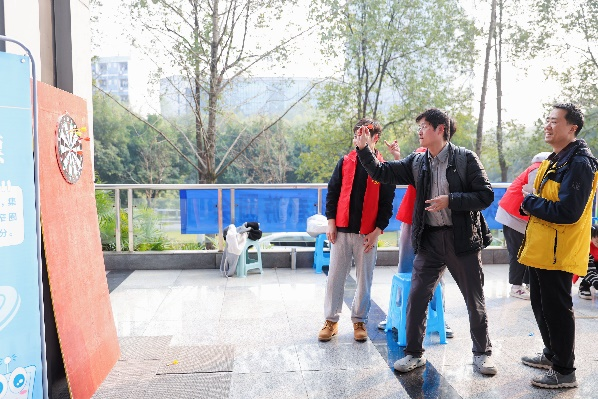 老师们在各式各样的趣味竞技中大显身手。“疯狂摇摆”活动中,老师们借助身体的摇摆,将固定在腰间容器内的乒乓球一一摇出。“飞镖绕圈”游戏中,老师们精准投掷,飞镖在空中划出一道道优美的弧线,准确落入靶心,赢得阵阵喝彩。趣味竞技项目使得每位参与者都能沉浸于运动竞技的欢乐之中,旁观者们或兴奋大叫,或热情助威,大家一同在欢乐融洽的氛围中庆祝新年的 到来。