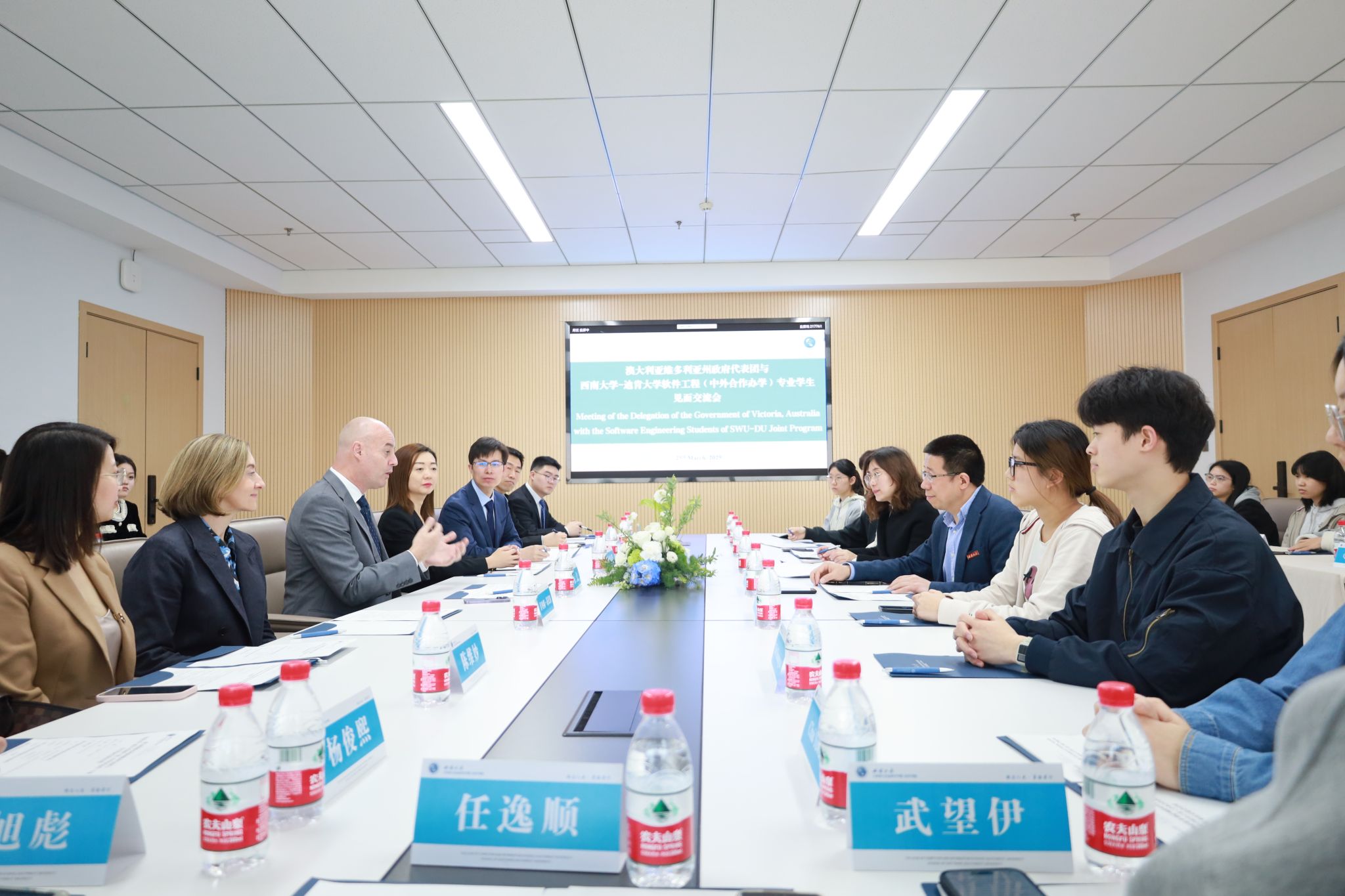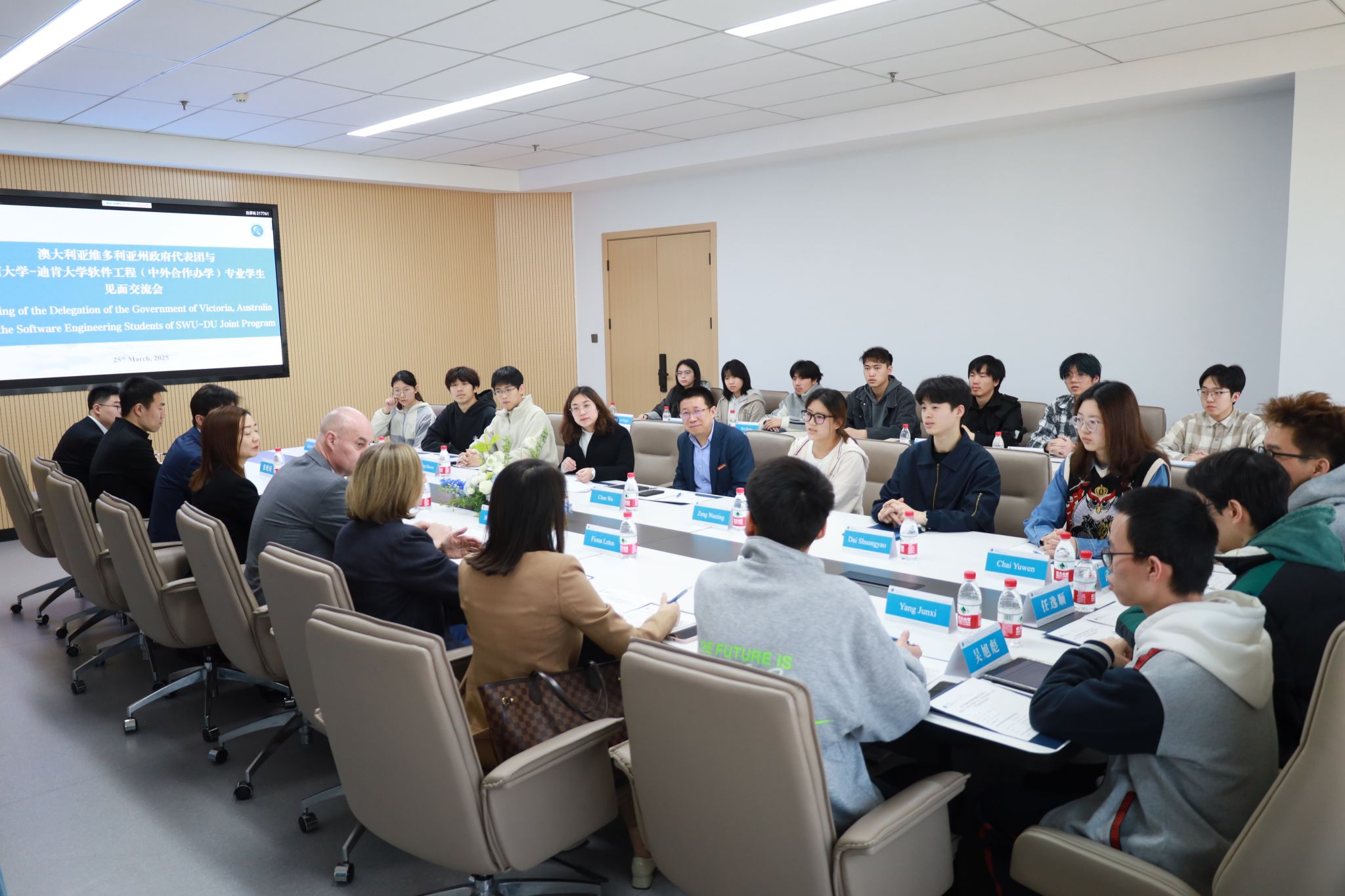 2025年3月25日上午,澳大利亚维多利亚州政府代表团与学院软件工程(中外合作办学)专业学生见面交流会在25教1314会议室举行。澳大利亚维多利亚州贸易投资成都代表处驻中华区特派专员石文(Brett Stevens),政府贸易、全球参与及国际教育事务部执行主任菲奥娜·莱托斯(Fiona Letos),大中华区副专员杜纬遥,教育服务主任陈维妙;中华人民共和国共和国驻墨尔本总领事馆李林泽副领事;best365英国体育在线国际合作与交流处合作办学科科长张晓琦,国际交流科科员雷也;学院副书记王晖、副院长陈武、软件工程专业辅导员与中外合作办学项目秘书以及2023级、2024级软件工程(中外合作办学)专业学生代表共同参加交流会。
