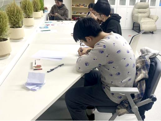 图1-2:同学们进行“盲画邻座”创作