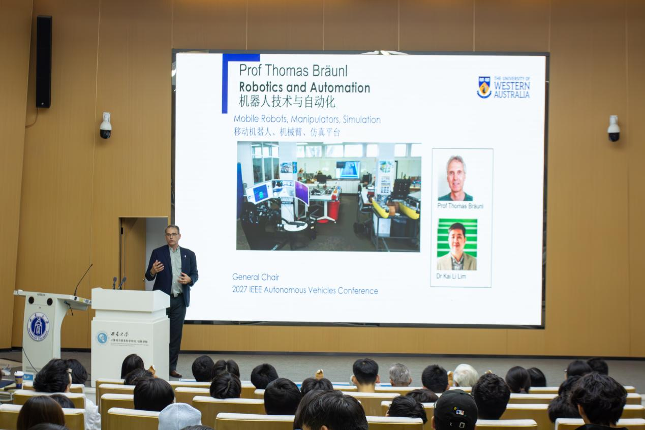 交流会上,Tim Sercombe教授从西澳大学学科优势、国际合作路径、教学资源配置、就业发展前景等方面作了详细介绍。他表示,西澳大学工程学科位列全球前100强,拥有先进的EZONE创新技术中心,配备无人机开发、自动驾驶模拟驾驶舱等先进设备,专业实力雄厚,能够为学生提供强有力的专业发展支持。西澳大学将与best365英国体育在线继续携手推进本硕连读项目,共建前沿专业选修模块,持续为学生提供国际化的学术培养与实践平台,希望自动化专业学子能够把握机遇,在跨学科学习中实现全面成长。