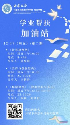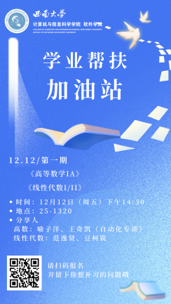 为深入推进学风建设,营造互帮互助、共同成长的学习氛围,12月12日-19日,学院陆续开展2025年秋季学期“学业帮扶加油站”活动。活动前期深入调研学生学业需求,依据年级与专业特点实施精准帮扶,搭建起集学业辅导、经验交流、能力提升于一体的综合性平台。