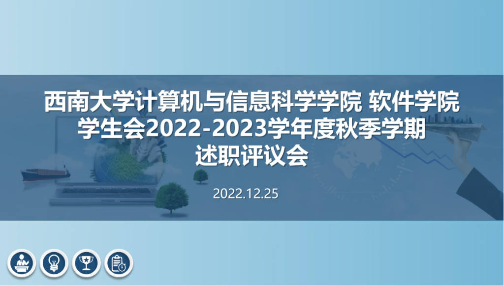 2022年12月25日,计算机与信息科学学院 软件学院2022—2023学年秋季学期学生会述职评议会在线上开展。学院团委书记邵羽西老师、学生会主席团成员、各部门成员以及各年级学生代表参加会议。