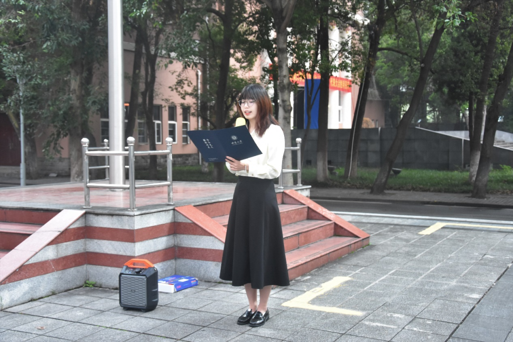 随后,2019级自动化专业金依菲同学作为学生代表发言。她向老师和同学们分享了自己的大学成长之路,告诉同学们,“低头慢步看不见远方的光,昂首挺胸才能大步向前”,鼓励全体计信院同学勇做时代新青年。