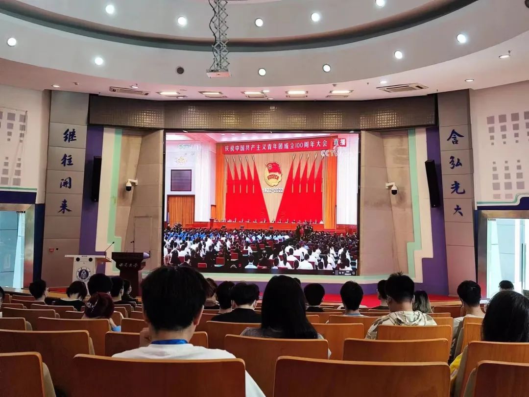 2022年5月10日上午10点,庆祝中国共产主义青年团成立100周年大会在北京人民大会堂隆重举行。计算机与信息科学学院 软件学院组织团学干部、青年团员等师生代表在二十五教一楼报告厅共同观看直播,学院各团支部利用课间,在教室、宿舍等地分别收看直播。