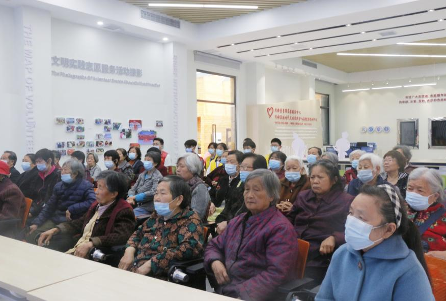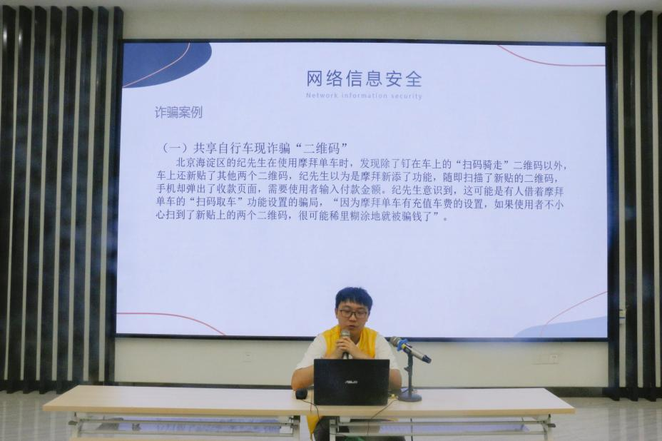在服务中心现场,学生志愿者们正在为学校退休的老教师及他们的家属普及网络安全方面的知识。