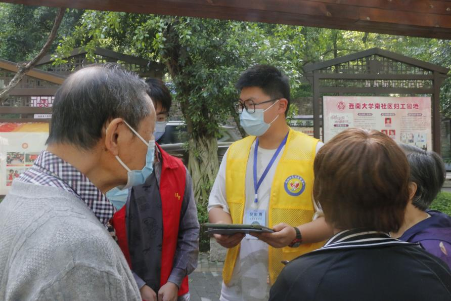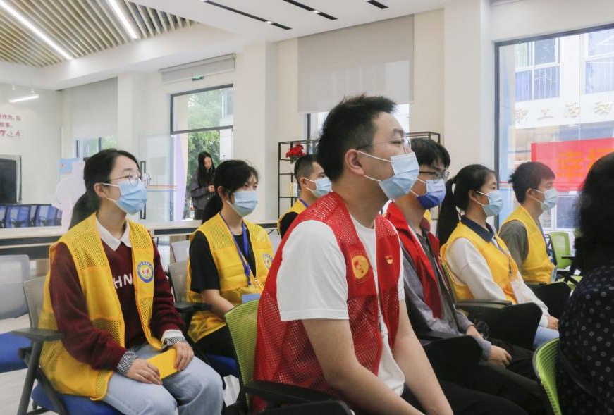 “各位老师,请提前打开渝康码,礼貌有序地进行登记参加活动。请注意,以任何理由发送链接让你点击提供流调信息的,都是诈骗……”这是及时雨志愿者服务队的队员们正在进行反电信诈骗宣传志愿服务活动中的一幕场景。