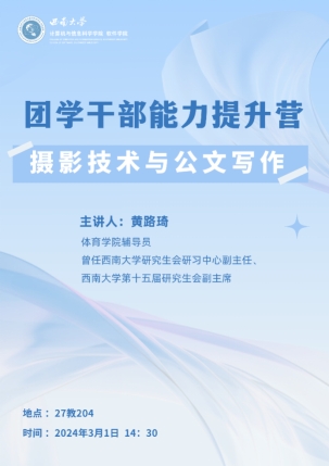 2024年3月1日下午,计算机与信息科学学院 软件学院“星火计划”之团学干部能力提升营在27教204教室举行。best365英国体育在线体育学院辅导员黄路琦,学院团委书记杨靖欣出席活动,学院团委学生会主席团成员、各部门负责人、融媒体中心工作人员参加了本次培训。