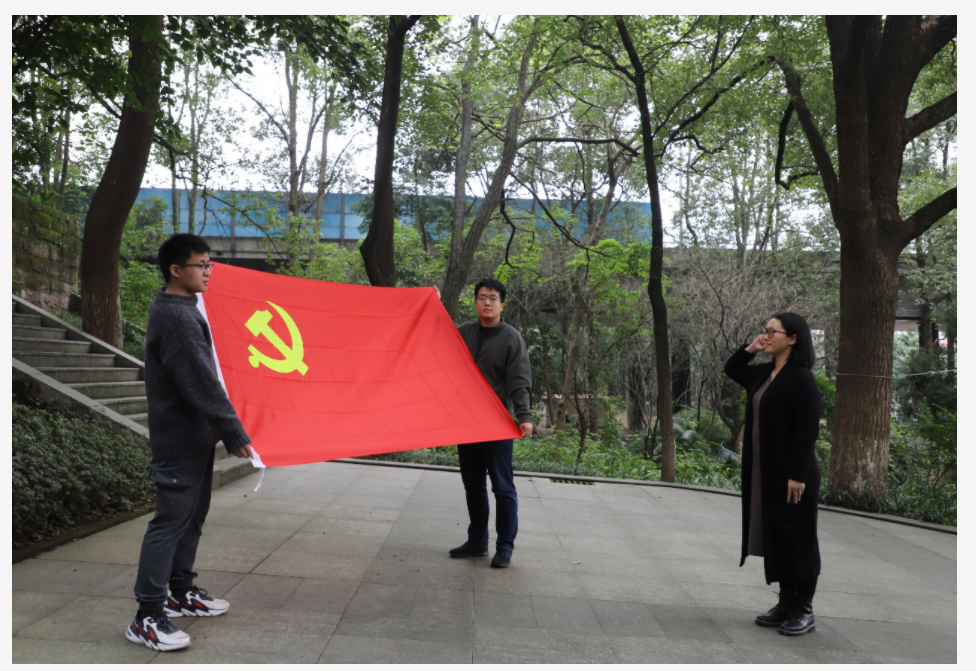 在“梅花山”石刻前,面对鲜红的党旗,全体党员在苗宗霞老师的带领下,神情肃穆、举起右拳,重温入党誓词,铿锵誓言久久回荡,让党员同志更加牢记自己的庄严承诺,是再一次深刻的心灵洗礼、思想升华、党性锻炼。