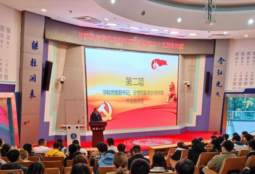 11月26日下午17:30,计算机与信息科学学院分党校第二十五期培训班开学典礼在25教一楼报告厅举行。党委副书记刘作勋、组织员张颖及全体党校学员参加。