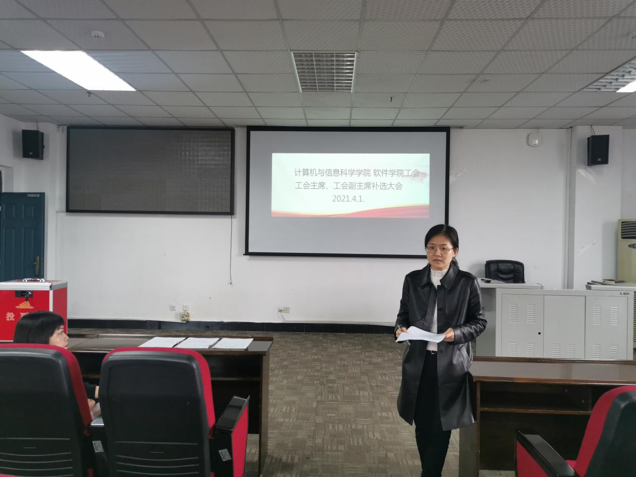 2021年4月1日下午,计算机与信息科学学院、软件学院在25教1320会议室召开学院第四届工会主席、副主席补选大会。会议由学院工会主席陶丽主持,学院工会委员共8人参加会议。