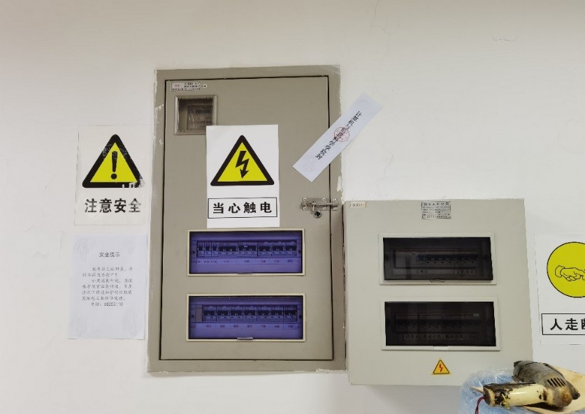 2. 检查、修复、安装所有本科实验室和研究实验室的配电箱锁扣并贴上封条,告知实验室人员平时不得擅自打开,有问题只能通知电工来处理。上报后勤保障部,提请对存在安全隐患的实验室配电箱内的线路问题进行整改。