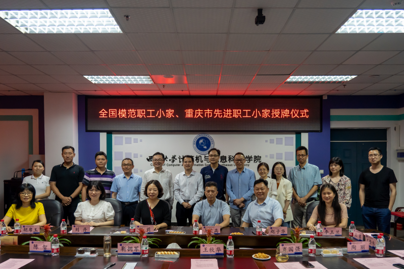 5月14日下午,重庆市教科文卫体工会常务副主席贺莉、副主席吴庆高一行为获得“全国模范职工小家”荣誉称号的计算机与信息科学学院”授牌。校工会主席赵子华、副主席胡席玉、副主席李玉兰、计算机与信息科学学院党委书...
