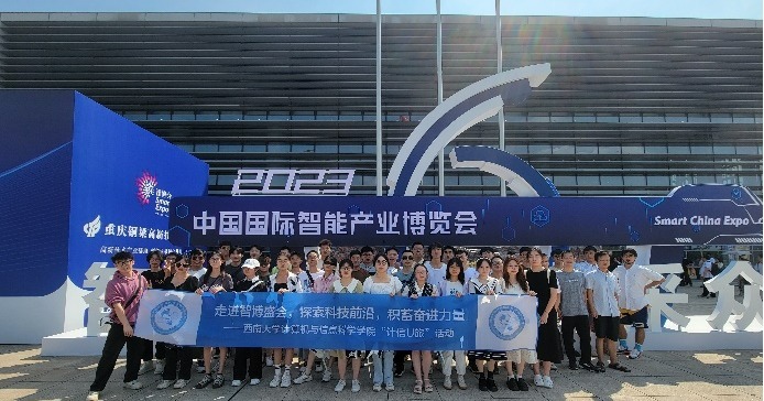 2023中国国际智能产业博览会于2023年9月4日在重庆国际博览中心隆重开幕。为开阔学生视野,了解数字经济和智能产业发展科技前沿,9月5日下午,学院组织了150余名本科生、研究生组成的观摩团前往2023重庆智博会参观学习。观摩团首先来到N5展区,这是智能制造和新一代信息技术的专题馆。同学们围绕着展台聆听着工作人员讲解...