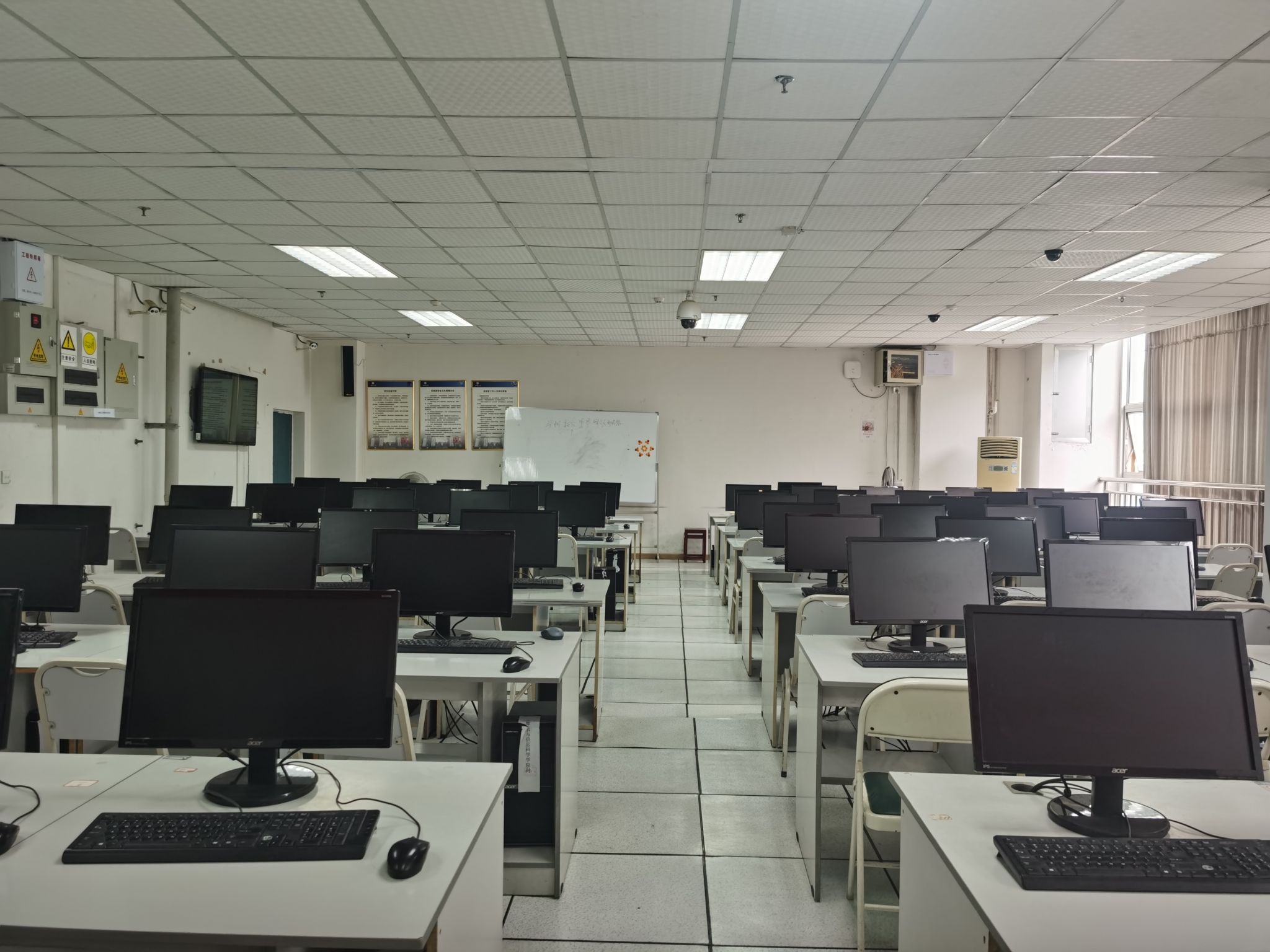 该实验室实验室主要用于计算机与信息科学学院 软件学院计算机科学、软件工程专业和公共计算机课,面积约为120平方米,拥有宏碁台式电脑60余台。每台计算机都安装了相关专业计算机实验课程所需要的开发软件和应用软件,所有计算机直接连接校园网,可以直接访问校内及校外(需登录校园网帐户)任何地方的资源,每个机房均安装多媒体功放机、吸顶式音箱、可移动宽幅白板、极域电子教室等教学设备和软件。