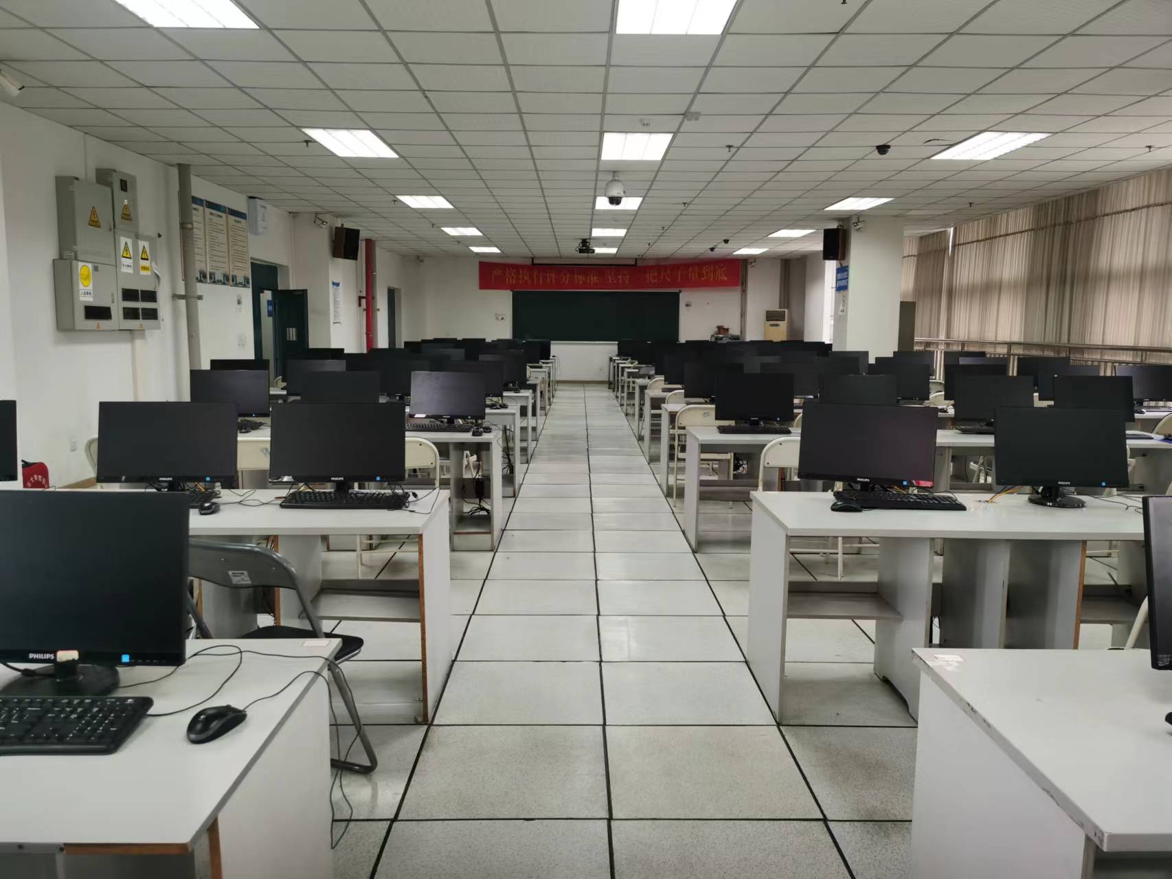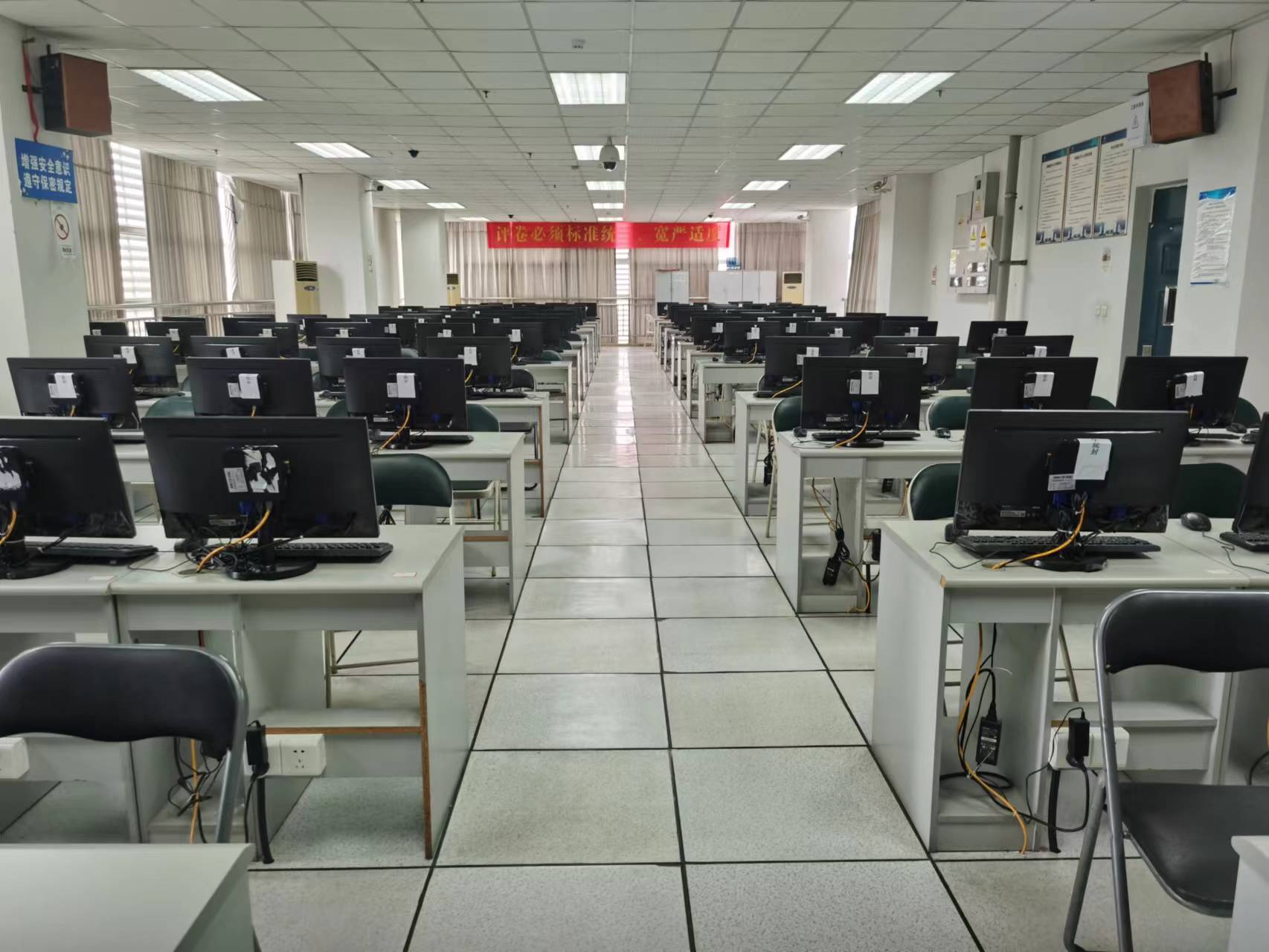 该实验室共有108台学生机,1台教师机,主要面向公共基础学科,提供全校的大学生计算机基础课程平台,另支持计算机与信息科学学院专业课程。机器全部采用深信服云平台瘦客户端结构,支持WIN7(32位)、WIN7(64位)、WIN10、LINUX等多平台系统,在不同平台上共有上百款教学用软件。老师和学生可以根据不同的需要选择不同的平台与软件进行实验。可支持高考阅卷、研究生自主招生、毕业生实习答辩等社会服务工作。